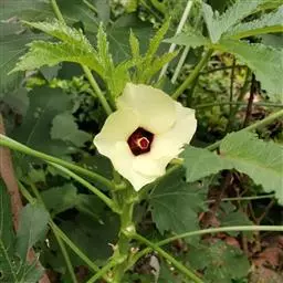 咖啡黄葵 Moench)亦称黄秋葵,是锦葵科一年生草本植物。茎圆柱形,疏生散刺。叶掌状,裂片阔至狭,…