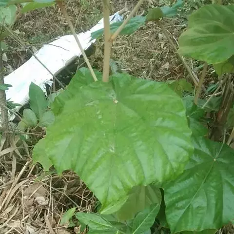 插条采集选择生长健壮、无病虫害、性状优良的当年生半木质化枝条,在阴天或无风的早晨剪取,剪留长度为6至7厘米,下切口为马蹄形,位于叶或腋芽下,切口要光滑,利于形成愈合组织。一般每个插条带2个掌叶。注意不要伤及叶片,以利光合作用。