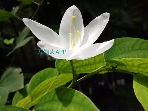 白花羊蹄甲的花数朵聚生,芳香,五杖分离花瓣,观赏花,白色。花期:春天,春天开花,先开花后才出叶,树上一片白色,相当容易辨认。