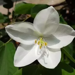 白花羊蹄甲(学名:Bauhinia variegata L.)羊蹄甲属,又名老白花皮,白花洋紫荆。叶近革质,花序总状或伞房状,顶生或侧生,总花梗短而粗,花托长12毫米,花蕾纺锤形;苞片及小苞片卵形,早落;花萼佛焰苞状,花大,花瓣白色或淡红色。花期3-5月,果期5-8月。