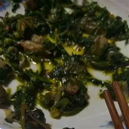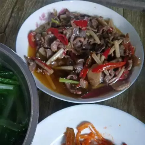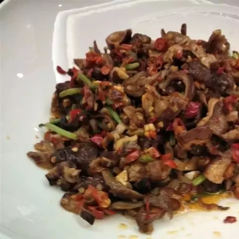 原料:牛腩、牛肚、牛肠各150克、蒜、姜各10克、干辣椒5克、蒜苗15克;