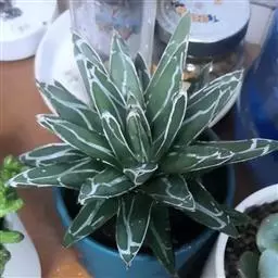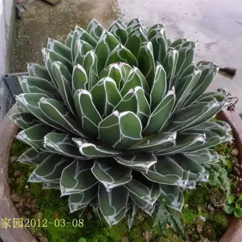 皇后龙舌兰是天门冬科、龙舌兰属多年生草本多浆植物。无主茎,叶丛生,莲座状,株幅40厘米。叶较多,…