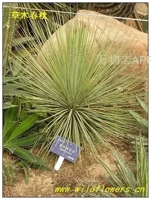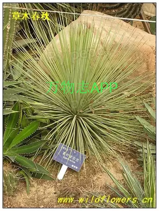 多年生植物无茎,叶质硬,放射状从基部发出,线形,基部呈三角形,表面粗糙,顶部具尖刺,叶灰绿色。叶呈莲座式排列,大而肥厚,肉质或稍带木质,边缘常有刺或偶而无刺,顶端常有硬尖刺。花茎粗壮高大,具分枝;花通常排列成大型稠密的顶生穗状花序或圆锥花序,有些种类每年或隔年开花一次,另一些种类只开花结果一次,开花后便死亡;花被管短,花被裂片6,狭而相似;雄蕊6,着生于花被管喉部或管内;花丝细长,常伸出于花被外,花药丁字形着生;子房下位,3室,每室有胚珠多数,花柱线形,柱头3裂。蒴果长椭圆形,室背3瓣开裂;种子多数,薄而扁平,黑色。细胞染色体基数x=30。