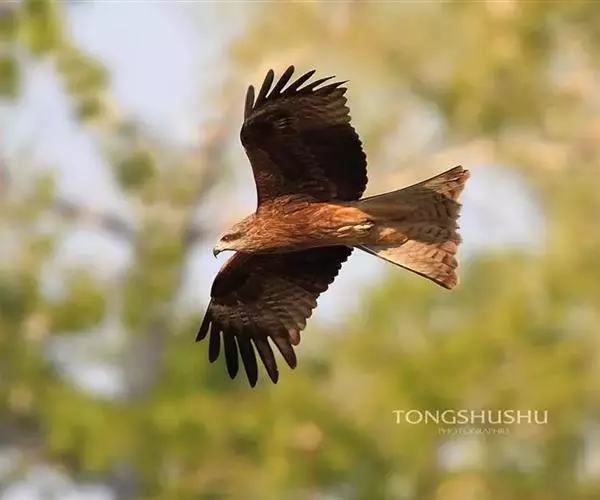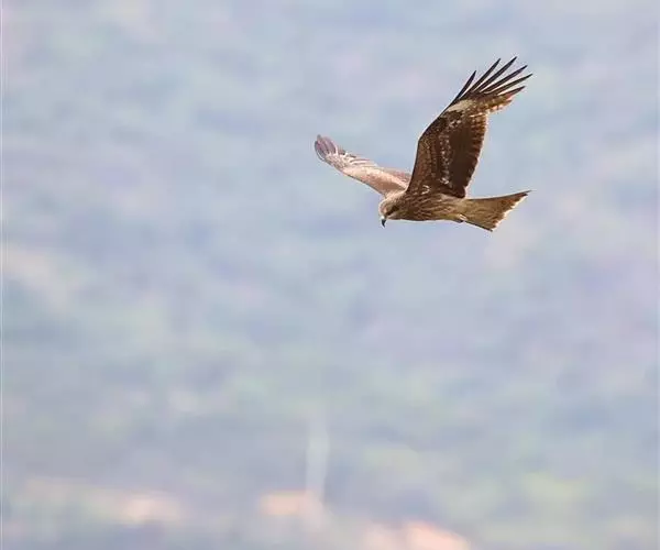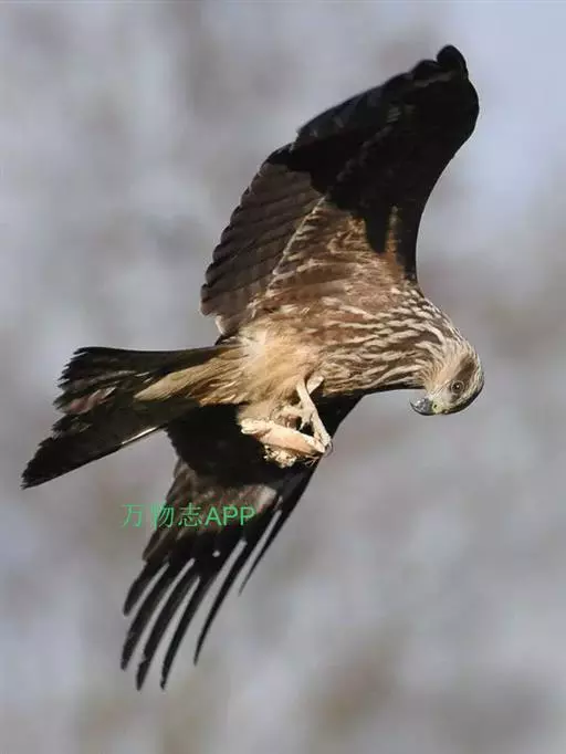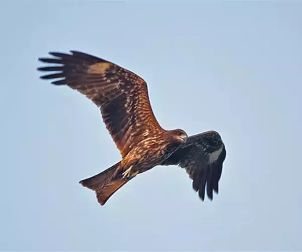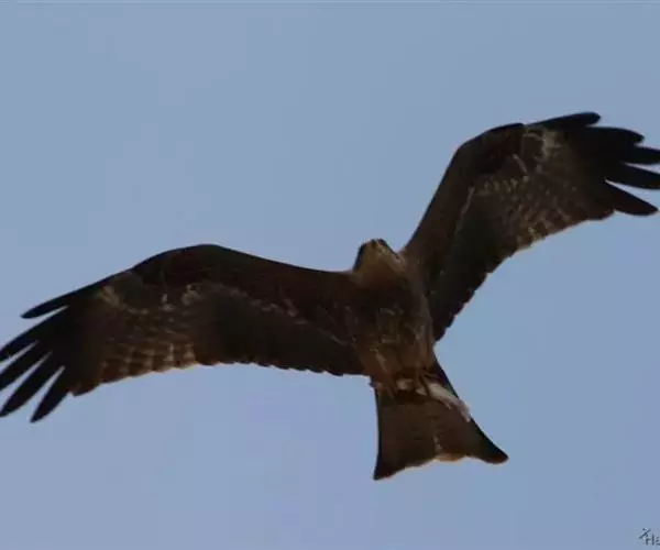 黑鸢(学名:Milvus migrans)是一种中型猛禽,共有7个亚种。体长54-69厘米。上体暗褐色,下体棕褐色,均具黑褐色羽干纹,尾较长,呈叉状,具宽度相等的黑色和褐色相间排列的横斑;飞翔时翼下左右各有一块大的白斑。雌鸟显著大于雄鸟。 栖息于开阔平原、草地、荒原和低山丘陵地带。白天活动,常单独在高空飞翔,秋季有时亦呈2-3只的小群。主要以小鸟、鼠类、蛇、蛙、鱼、野兔、蜥蜴和昆虫等动物性食物为食。一般通过在空中盘旋来观察和觅找食物。分布于欧亚大陆、非洲、印度,一直到澳大利亚。