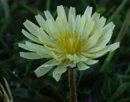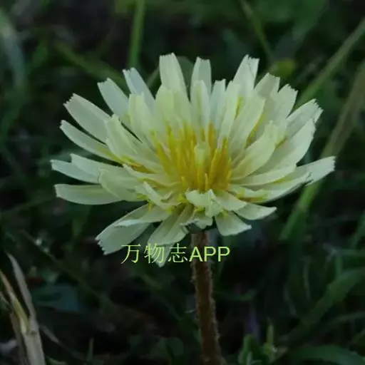白花蒲公英(Taraxacum pseudo- albidum Kitag. ),菊科,蒲公英属。多年生草本,植株高3—10厘米。叶无毛,条形,少狭倒卵形。舌状花白色,花果期6—8月 。分布于产甘肃西部(阿克塞)、青海、新疆、西藏等省区。