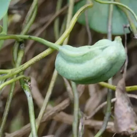 蒴果长圆形,长约2.5厘米,直径约1.5厘米, 6棱,成熟时黄褐色,由基部向上6瓣开裂;果梗常随果实开裂成6条;种子卵形或卵状三角形,长约4毫米,宽约3.5毫米,背面凸起,具疣状突起小点,腹面凹入,中间具种脊,褐色。花期4-8月,果期10-12月。