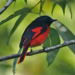 赤红山椒鸟为山椒鸟科山椒鸟属的鸟类,俗名红十字鸟、朱红山椒鸟。雄鸟红色,雌鸟黄色。…