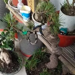 五针松 五针松翻盆浇透水后,要先置于蔽荫处养植10天,然后移至半阴半阳处养植一周,再放到阳光充足、空气流通、小气候湿润处养护。它怕烈日曝晒,尤其上细盆的五针松盆景,因盆土较少,更怕烈日,夏季应置于半阴半阳处。在天气干燥以及高温时,每天早、晚应在五针松盆景附近的地面洒水1~2次,以保持小气候的湿度。在北方秋末初冬,将五针松盆景移入无烟室内(因五针松比一般盆花更忌烟害),室温在5℃左右为好,如室温过高,会影响冬季休眠,对翌年生长不利。五针松盆栽用土要求排水、通气性好、富含有机质微酸性的砂质土,一般常用腐叶土与黄泥土(或黑山泥)和砂质土拌和,比例为6:3:1。盆土不可呈碱性,否则不利 生长,五针松会发黄脱落。