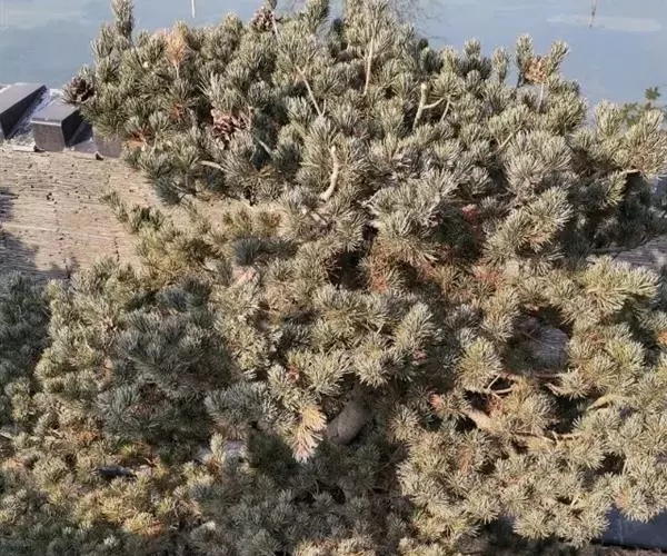 短叶五针松var.brevifolia,叶细.极短,密生。