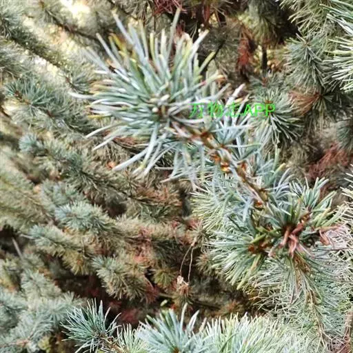 银尖五针松var.alb-terminata,叶先端黄白色。