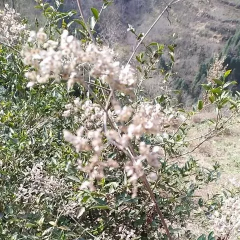 圆锥花序顶生,长8~20厘米,宽8~25厘米;花序梗长0~3厘米;花序轴及分枝轴无毛,紫色或黄棕色,果实具棱;花序基部苞片常与叶同型,小苞片披针形或线形,长0.5~6厘米,宽0.2~1.5厘米,凋落;花无梗或近无梗,长不超过1毫米;花萼无毛,长1.5~2毫米,齿不明显或近截形;花冠长4~5毫米,花冠管长1.5~3毫米,裂片长2~2.5毫米,反折:花丝长1.5-3毫米,花药长圆形,长1~1.5毫米;花柱长1.5~2毫米,柱头棒状。