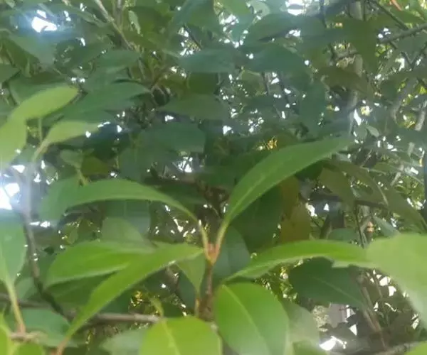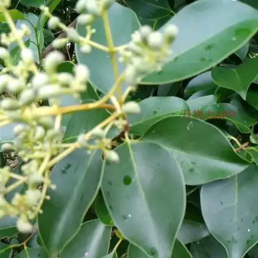 叶片常绿,革质,卵形、长卵形或椭圆形至宽椭圆形,长6~17厘米,宽3~8厘米,先端锐尖至渐尖或钝,基部圆形或近圆形,有时宽楔形或渐狭,叶缘平坦,上面光亮,两面无毛,中脉在上面凹入,下面凸起,侧脉4~9对,两面稍凸起或有时不明显;叶柄长1~3厘米,上面具沟,无毛。