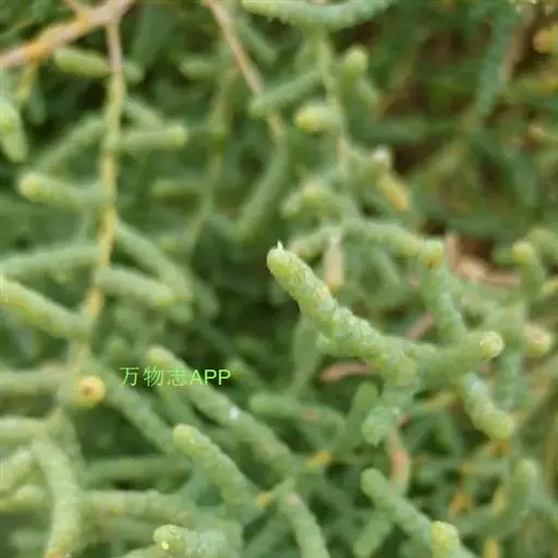 小灌木,高20-50厘米。茎直立或平卧,多分枝;枝灰褐色,小枝上部近于草质,黄绿色。叶片圆柱状一,伸展或稍弯,灰绿色,长4-10毫米,宽2-3毫米,顶端钝,基部下延,半抱茎。