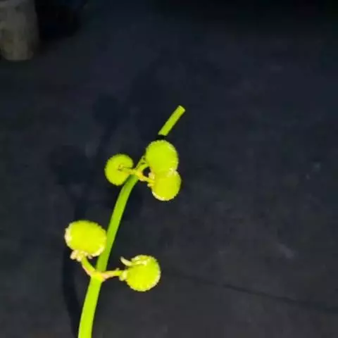 该变种与原变种不同在于:植株高大,粗壮;叶片宽大,肥厚,顶裂片先端钝圆,卵形至宽卵形;匍匐茎末端膨大呈球茎,球茎卵圆形或球形,可达5-8×4-6厘米;圆锥花序高大,长20-60厘米,有时可达80厘米以上,分枝()1-)2()-3),着生于下部,具1-2轮雌花,主轴雌花3-4轮,位于侧枝之上;雄花多轮,生于上部,组成大型圆锥花序,果期常斜卧水中;果期花托扁球形,直径4-5毫米,高约3毫米。种子褐色,具小凸起。