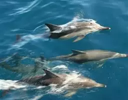 真海豚,身体细而流线型。体色十分复杂而独特,通常十字交叉型,黄褐色在前灰色在后,背面黑色向下延伸,…