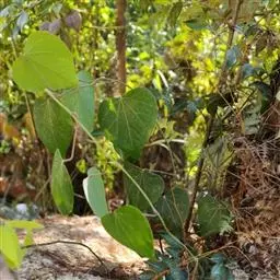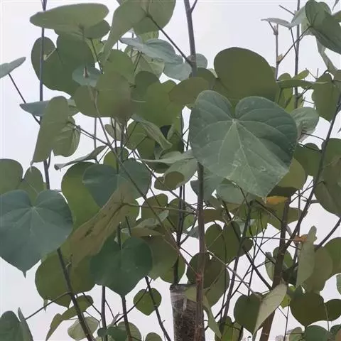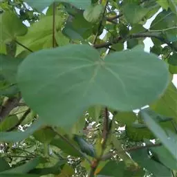 叶纸质至近革 质,卵状长圆形至椭圆状长圆形,长8-15厘米,宽6-7厘米,先端短渐尖,基部钝至阔楔形,全缘,两面均平滑无毛,上面暗绿色,下面苍绿色,基生脉3 (-5)条,在下面隆起,叶柄长2-4.5厘米,疏被短柔毛;托叶小,早落。花未见。