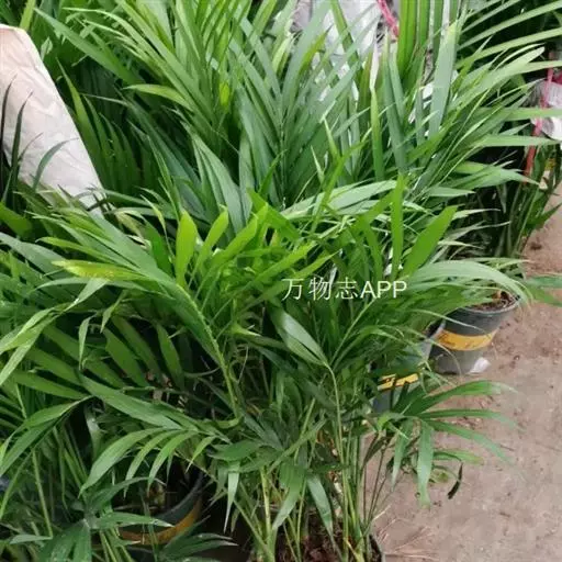 这两种植物外形与“袖珍椰子”较相似,具体区分如下: 1.散尾葵(Chrysalidocarpus lutescensH. Wendl.):棕榈科散尾葵属,丛生灌木至小乔木,高3-8米;茎基部略膨大。叶羽状全裂,扩展而稍弯;裂片40-60对,2列排列,较坚硬,通常不下垂,披针形,长40-60厘米,顶端长尾状渐尖并呈不等长的短2裂;叶轴光滑而呈黄绿色,近基部有凹槽;叶鞘长而略膨大,通常黄绿色,初时上部被白粉。肉穗花序生于叶鞘束下,多分枝,排成圆锥花序式,花雌雄同株,小而呈金黄色,雄花萼片和花瓣各3片,雄蕊6枚;雌花花被与雄花同,子房3室,有短的花柱和阔的柱头。果稍呈陀螺形,长约1.5厘米,直径约5毫米,紫黑色,无内果皮。 原产马达加斯加;现广东、广西有栽培。多植于庭园和花圃中。