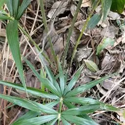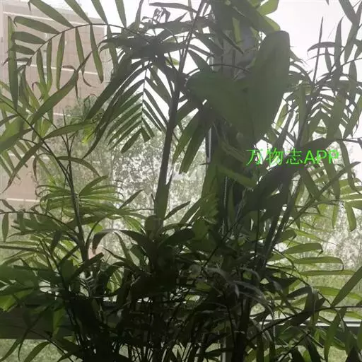 细叶棕竹,灌木,茎细如竹,多数聚生,有网状叶鞘。叶半圆形,掌状深裂,裂片狭长,阔线形,软垂,裂片7…