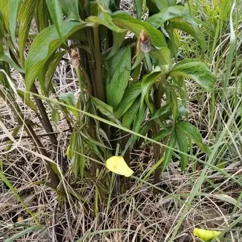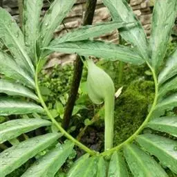 黄苞南星 Schott)是天南星科、天南星属植物,块茎近球形,鳞叶锐尖,叶片鸟足状分裂,…