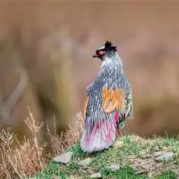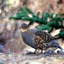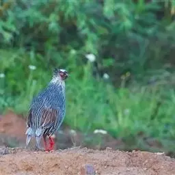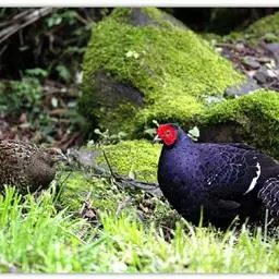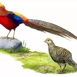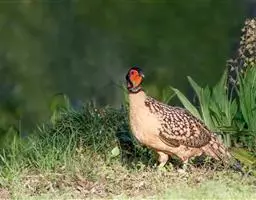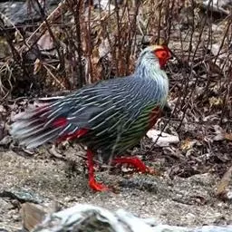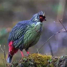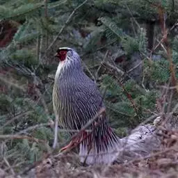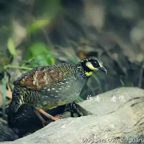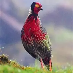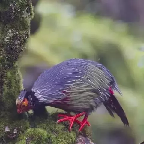 血雉雉科血雉属鸟类,别名血鸡、松花鸡,血雉的雄鸟大覆羽、尾下覆羽、尾上覆羽、脚、头侧、腊膜为红色,…