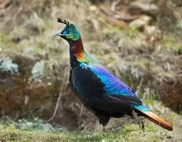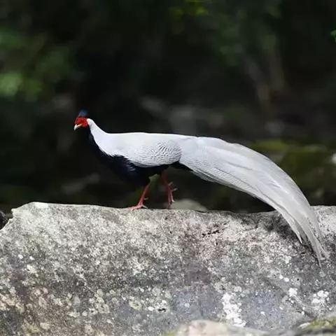 黑长尾雉大型鸡类,体长53~88厘米。雄较雌大。雄鸟通体紫蓝色,脸鲜红色,翅上有一条显著的白色翅斑…