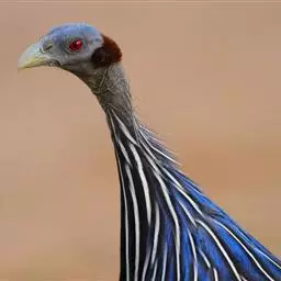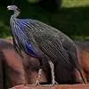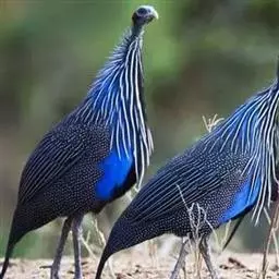鹫珠鸡:是珠鸡科中体形最大的一种,因头颈部像兀鹫而得名。雌雄羽色相似,为黑色基底上遍布白色点斑,…