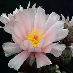 仙人球花 仙人掌科,仙人球属。植株单生或成丛。幼株球形,老株长成圆筒状,高可达75厘米,直径12-…