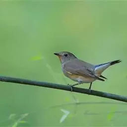 橙胸姬鹟:体长12-16厘米,是一种体型略小的林栖型鹟。尾黑而基部白,上体橄榄褐色,额具一白色横带,…