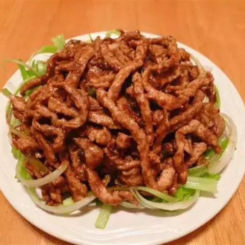 京酱肉丝,是一道知名度很高的菜肴,它是北京菜中的经典代表菜之一。制作时选用猪瘦肉为主料,辅以甜面酱…