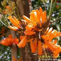 火烧花 Kurz)是紫葳科火烧花属常绿乔木;树皮光滑;叶为奇数羽状复叶对生,小叶卵形或卵状披针形,…