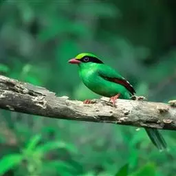 蓝绿鹊:中型鸟类,共有5个亚种。体长36-38厘米。尾长,嘴、脚红色。通体羽色主要为草绿色,…