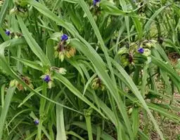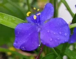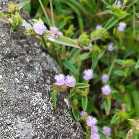 蓝耳草(学名:Cyanotis vaga (Lour.) Schultes. et J. H. Schultes)是多年生披散草本植物,基部有球状而被毛的鳞茎,茎通常自基部多分枝,叶片线形至披针形,蝎尾状聚伞花序顶生,并兼腋生,单生,总苞片较叶宽而短,佛焰苞状,苞片镰刀状弯曲而渐尖,两列,每列覆瓦状排列;萼片基部连合,长圆状披针形,顶端急尖,花瓣蓝色或蓝紫色,顶端裂片匙状长圆形;花丝被蓝色绵毛。蒴果倒卵状三棱形,种子灰褐色,具许多小窝孔。7-9月开花,10月结果。