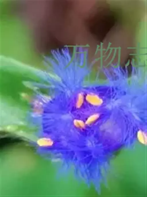 多年生披散草本,全体密被长硬毛,有的为蛛丝状毛,有的近无毛,基部有球状而被毛的鳞茎,鳞茎直径约1厘米。茎通常自基部多分枝,或上部分枝,或少分枝,长10-60厘米。叶线形至披针形,长5-10(15)厘米,宽0.3-1 (1.5)厘米。蝎尾状聚伞花序顶生,并兼腋生,单生,少有在顶端数个聚生成头状,具花序梗或无;总苞片较叶宽而短,佛焰苞状,苞片镰刀状弯曲而渐尖,长5-10毫米,宽约3毫米,两列,每列覆瓦状排列;萼片基部连合,长圆状披针形,顶端急尖,长近5毫米,外被白色长硬毛;花瓣蓝色或蓝紫色,长6-8毫米,顶端裂片匙状长圆形;花丝被蓝色绵毛。蒴果倒卵状三棱形,顶端被细长硬毛,长约2.5毫米,直径约3毫米。种子灰褐色,具许多小窝孔。花期7-9月,果期10月。
