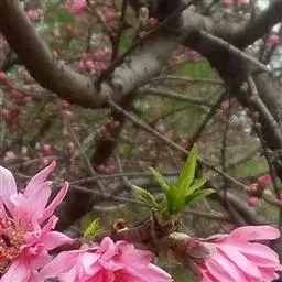 属于观赏桃花类的半重瓣及重瓣品种,统称为碧桃。华东地区碧桃花期是3月~4月,花朵丰腴,色彩鲜艳丰富,花型多。常见的品种有红花绿叶碧桃、红花红叶碧桃,白红双色洒金碧桃等多个变种。碧桃具有很高的观赏价值,在小区、公园、街道随处可见的美丽植物。