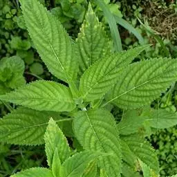 茴藿香的叶片为狭长心形,对生,叶缘呈粗锯 齿状,有明显的叶脉,叶质柔软,将叶片轻揉可闻到八角香料的味道。茎直立性,分枝多,植株高度在35-80公分左右,夏季开花,花顶生,长穗状,花色呈紫色或白色。