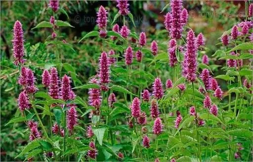 茴藿香(Anise Hyssop),是双子叶植物纲、唇形目、脣形花科、茴藿香属多年生草本植物,半日照至全日照,叶子外形类似香蜂草,有茴香的香气,也像罗勒与龙蒿的综合香气,可用来泡茶、做沙拉、腌肉,是法国龙蒿的替代品。茴藿香的学名为Agastachefoeniculum,是唇形花科茴藿香属的多年生草本植物,英名为AniseHyssop,意思为具有茴香味的海索草,因此又有人称为茴香海索草、大海索草。
