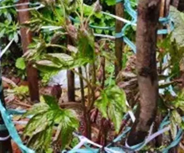 选地势较高、排水良好的圃地做扦插床,床土翻松后,铺15厘米厚的河沙,河沙要用0.5%的高锰酸钾消毒。扦插基质也可用蛭石或珍珠岩。在床上搭高1.5米的遮阳棚,据长春等地的经验,以7月中旬截取插穗扦插效果最好。插穗长10~15厘米。带两个节,上一个复叶,留少许叶片;下一个复叶,连叶柄剪去,用浓度为500×10~1000×10萘乙酸或吲哚乙酸溶液速蘸处理后扦插,插深约5厘米,间距以叶片不互相重叠为准。插后浇透水,再盖上塑料棚。据观察,基质温度28~30℃,湿度50%时生根效果最好。扦插棚内保持温度20~25℃,湿度80%~90%,则插后20~30天即可生根,并形成休眠芽。生根后,应减少喷水和浇水量,逐步揭去塑料棚和遮阳棚。扦插苗生长较慢,需在床上覆土越冬,翌年春天移至露地栽植 。