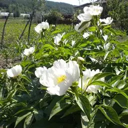 一般单独着生于茎的顶端或近顶端叶腋处,也有一些稀有品种,是2花或3花并出的。原种花白色,花径8~11厘米,花瓣5~13枚,倒卵形,雄蕊多数,花丝黄色,花盘浅杯状,包裹心皮基部,顶端钝圆,心皮3~5枚无毛或有毛,顶具喙;园艺品种花色丰富,有白、粉、红、紫、黄、绿、黑和复色等,花径10~30厘米,花瓣可达上百枚,有的品种甚至有880枚,花型多变。花期5~6月,果期8月。果实