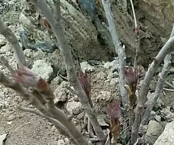 丛生在根颈上,肉质,冬季在地下越冬,春初随气温上升,萌芽出土,初生时水红色至浅紫红色,也有黄色的,长出地面后,颜色加深,一般成为深紫红色,外有鳞片保护。芍药的芽为混合芽,既发育成生殖器官——花,又形成营养器官——茎和叶。萌芽前,芽长为2.5~4厘米。芽生出地面之后的颜色与形态也因品种不同会有所差异,颜色从深紫红色到黄褐色不等,芽形则可分为3型:即短圆型、竹笋型、笔尖型。短圆型,芽体较短,端部钝圆形;竹笋型,芽体较长,端部急尖,呈竹笋状;笔尖型,芽体较长,端部渐尖,状如毛笔的笔尖。芍药发芽是最壮观的场面之一,因为它体现了生命的萌发与活力,因此具有较高的欣赏价值。