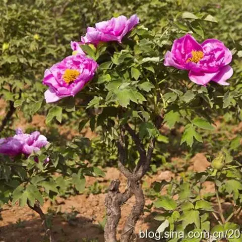 分株时细心挖起肉质根,尽量减少伤根,挖起后,去除宿土,削去老硬腐朽处,用手或利刀顺自然缝隙处劈分一般每株可分3~5个子株,每子株带3~5个或2~3个芽;母株少而栽植任务大时,每子株也可带1~2芽,不过恢复生长要慢些,分株时粗根要予以保留。若土壤潮湿,芍药根脆易折,可先晾一天再分,分后稍加阴干,蘸以含有养分的泥浆即可栽植。 在园林绿地中,芍药栽植多年,长势渐弱急待分栽,又不能因繁殖影响花期时游人观赏,可用就地分株的方法,用锹在芍药株旁挖一深穴,露出部分芍药根,然后,用利铲将芍药株切分,尽量减少对原株的震动,取出切分下来的部分,进行分株栽植,方法同上一般以切下原株的一半为宜。挖出的深穴,可加人适量肥料掺土压实。也可以用隔行分栽或隔株分栽的方法,这样,可在不影响景观的前提下,分株复壮,只是要连续分株2~3年而已。但是,因为芍药忌连作,隔行或隔株分栽的方法,不可连续应用,否则病虫害发生严重,生长不良,甚至死亡率大为增加。
