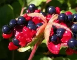 芍药的种子 芍药的果实为蓇葖果,每个蓇葖含种子1~7粒。待种子成熟,蓇葖开裂,散出种子。各地果实成熟期不一,如黑龙江省牡丹江在9月上旬、山东荷泽在8月下旬、河南洛阳在8月上中旬、江苏扬州在8月下旬前后。种子宜采后即播,随播种时间延迟,种子含水量降低,发芽率下降。种子有上、下胚轴双重休眠特性,播种后秋天的土壤温度使种子的下胚轴解除休眠状态,胚根发育生根。当年生根情况愈好,则来年生长愈旺盛;若播种过迟,地温不能解除下胚轴休眠,不能生很,则第二年春天发芽率大大降低。秋天播种生根后,经过冬天长时间的低温,可解除上胚轴的休眠。翌年春天气温上升,湿度适宜时,胚芽出土。