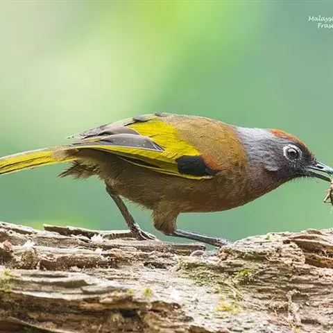 黑额山噪鹛是噪眉科、噪鹛属中型鸟类,体长27-31厘米。上体橄榄褐色,尾上尾下覆羽棕红色,…