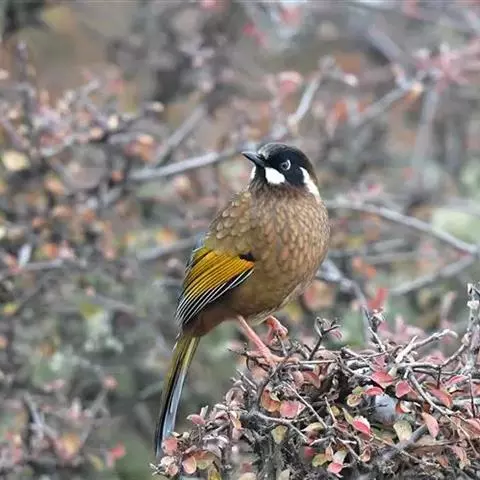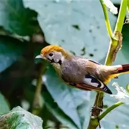 黑头奇鹛(Heterophasia melanoleuca):小型鸟类,体长20-24cm。前额、头顶一直到后颈黑色具有金属光泽,头侧和耳羽暗褐色。上体褐灰色,尾羽暗褐色具灰白色端斑。飞羽褐色,外翈黑色。下体几纯白色,仅胸和体侧沾灰。多分布于缅甸、中国西部及中部、泰国北部和印度支那。