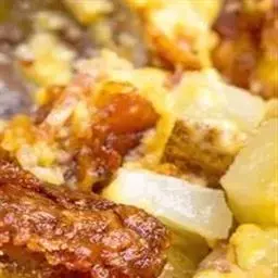 8、倒入第五步炒好排骨料。