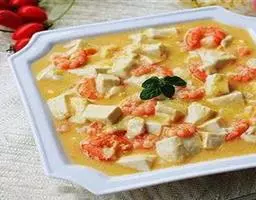山珍豆腐是一道川菜,主料有豆腐,调料有大葱、姜、植物油、酱油、料酒。