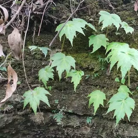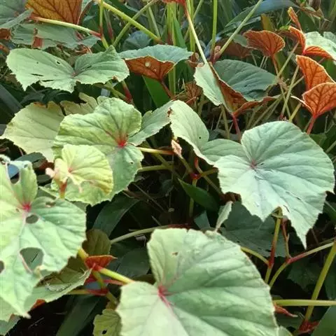 兰屿秋海棠(学名:Begonia fenicis Merr.):秋海棠科,秋海棠属的多年生无茎草本植物,根状茎长圆柱状,叶均基生,叶片两侧极不相等,轮廓卵状圆形或近圆形,上面深绿色,下面色淡,掌状脉,下面明显呈深紫色,花葶细弱,有纵棱,花聚伞花序,白色至粉红色,花被片扁圆形,花药长圆形,子房卵状长圆形,蒴果下垂,种子小极多数,5月至8月开花。