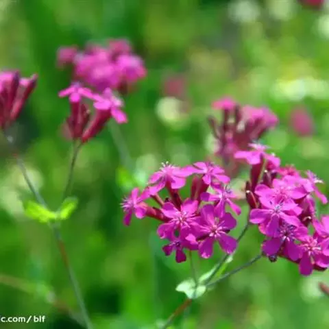 毛剪秋罗,别名:毛缕、醉仙翁,拉丁文名:Lychnis coronaria Desr. 石竹科、剪秋罗属多年生草本,高40-80厘米,全株密被灰白色绒毛。茎直立,粗壮,分枝稀疏。基生叶叶片倒披针形或椭圆形,基部渐狭呈柄状,顶端急尖;茎生叶无柄,较小。二歧聚伞花序稀疏;雌雄蕊柄短,不明显;花瓣深红色,爪倒披针形,无毛,耳缺,瓣片轮廓倒卵形,顶端微凹缺;副花冠片狭披针形,雄蕊不外露。蒴果长圆状卵形,种子肾形,黑褐色,具小瘤。花期5-6月,果期6-7月。图片取自中国植物图库