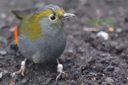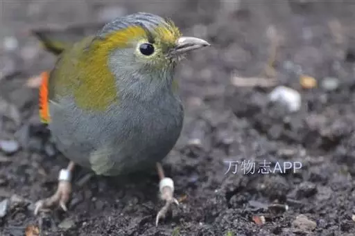 银耳相思鸟小型鸟类,体长14~18厘米。头顶黑色,耳羽银灰色,前额橙黄色;外侧飞羽橙黄色,基部朱红色,…