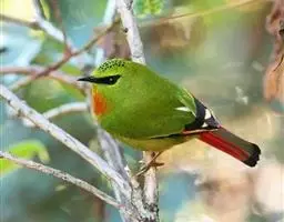 白腹凤鹛是绿鹃科、绿凤鹛属的小型鸟类,体长10-12厘米。上体从头到尾黄绿色,有短的羽冠,…