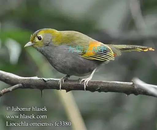 灰胸薮鹛(学名:Liocichla omeiensis),是画眉科薮鹛属的一种,为中国大陆的特有种。体型略小(17厘米)的薮鹛。上体灰橄榄色,下体及脸侧灰色。额、眉纹及颈侧橄榄黄色。虹膜-褐色;嘴-褐色;脚-褐色。雌性成鸟与雄鸟略有不同,雌鸟翼斑、尾端及尾下覆羽端部的赤红色,均被浅橙黄色所代替,其余部分与雄鸟羽色相同。